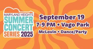 Vago Park, Friday, September 19th—Maryland Heights is bringing LIVE music to your own backyard! Pack your chairs, picnic blankets and come listen to McLovin, St. Louis’ premier dance & party rock band. McLovin brings high-energy performances and a genre-blending mix of rock, pop, country, soul, and funk. With unmatched talent and over 50 years of combined experience, McLovin guarantees a fun, unforgettable night. Bands will play from 7:00–9:00 p.m. Concerts are free, all ages are welcome!